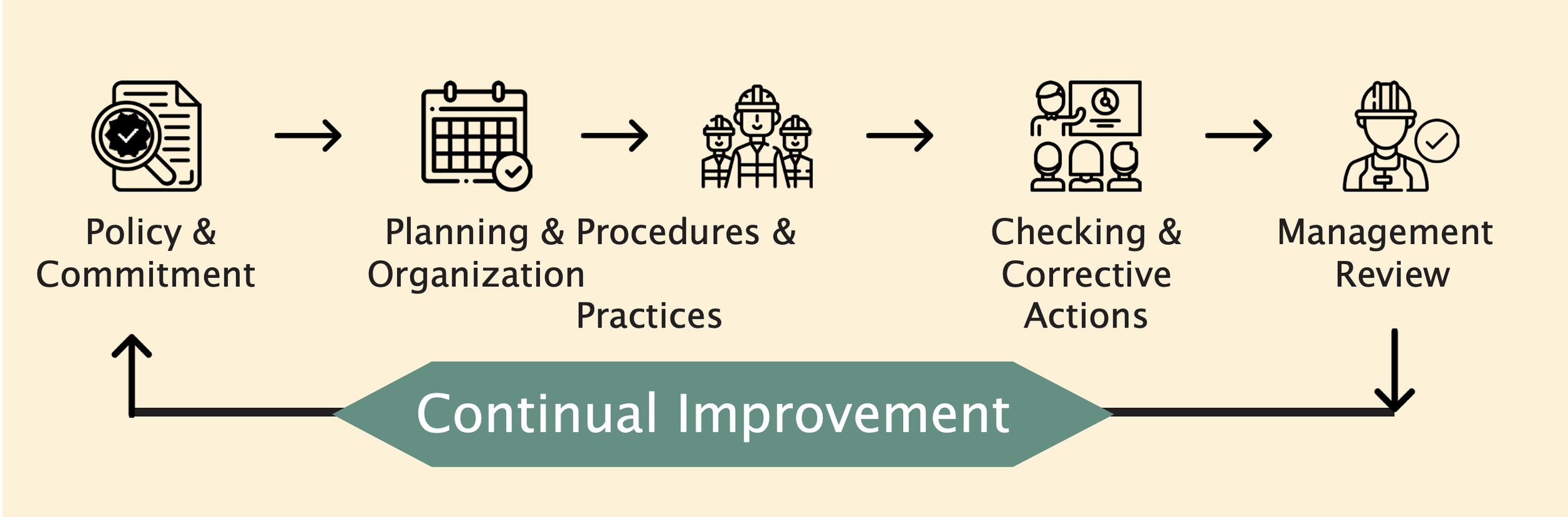 HSE Management System (HSEMS) complies with local legislation and refers to the quality management process to incorporate into the HSE management approach. Utilizing this process allows the project to maintain a continual improvement cycle. These improvements are expected to be realized by the reduction of on-site risks in a systematic manner.